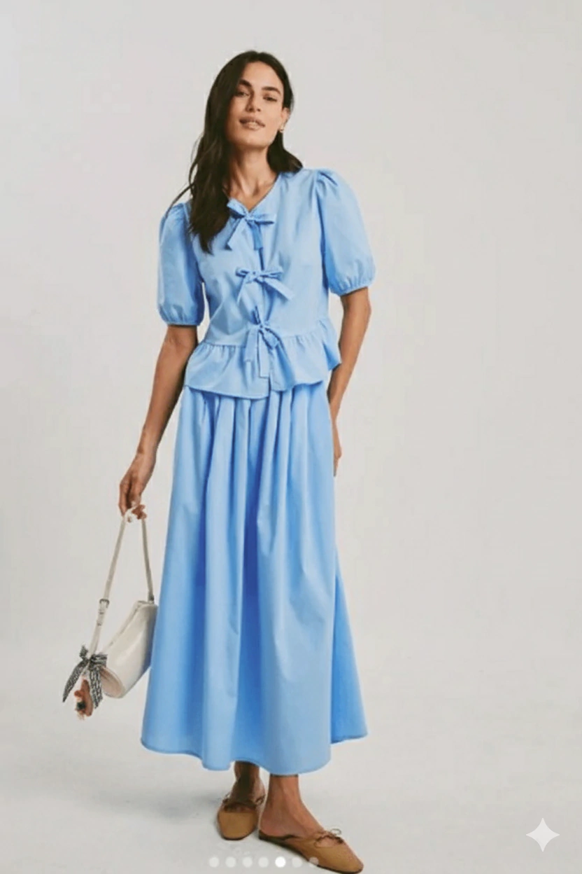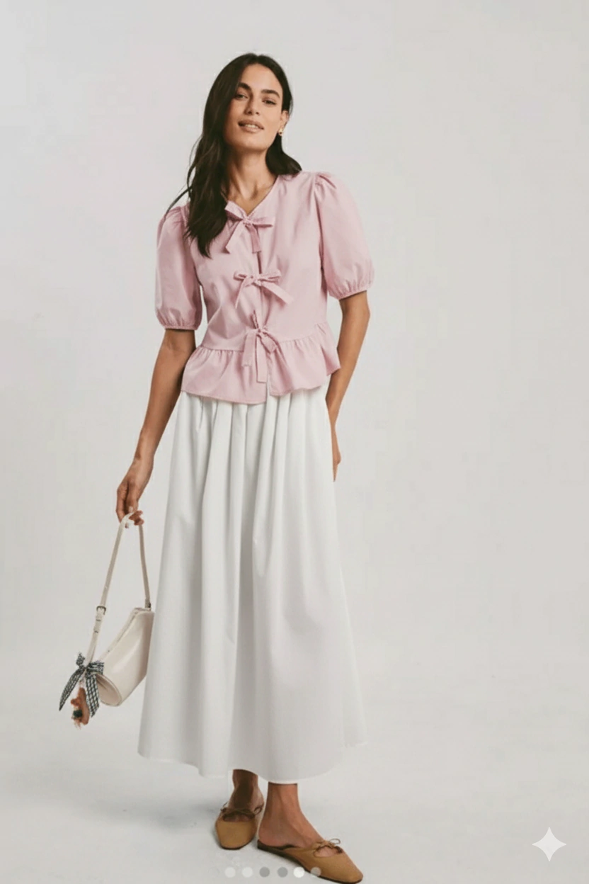 Com suas mangas bufantes com acabamento em elástico, a blusa ganha um ar romântico e sofisticado. O fechamento por laços adiciona delicadeza ao design, enquanto as pences na linha do busto proporcionam um caimento perfeito que valoriza a silhueta de forma natural.